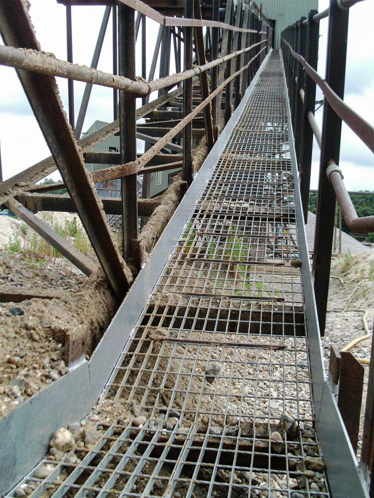 A J Specialist Welding have recently undertaken a major project for Hanson Aggregates at their Bulls Lodge site for the replacement of the wooden conveyor walkway and wooden kick flats on their conveyor systems to flow forge flooring and 150 mm x 6 mm steel kick flats to bring them up to today’s standards.